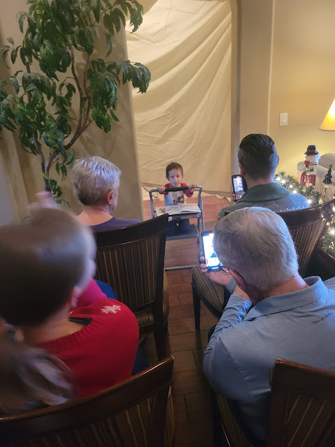 Today was the Winter Concert for Central School, held in the auditorium of 3rd-6th grade school across the street. As parents walked in Pre-K kiddos were playing music. I tried to get Toby to pose, but he wakes to listen to them playing. Here are the Kindergarten's on-stage singing. Unfortunately this video cropped poorly when I tried to zoom in while editing. Fortunately, you can still see Toby unsure what to do with his candy cane prop when the candy cane song was over. Thanks for putting together a fun concert, Mr. Pavliv!