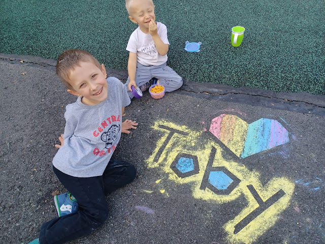 Painting flags with Spencer. (Spencer was not painting flags per se, but he definitely wanted to be in on the paint party.) Maybe Toby will always love flags. Maybe not. But painting flags will remind me of his time in nursery school.